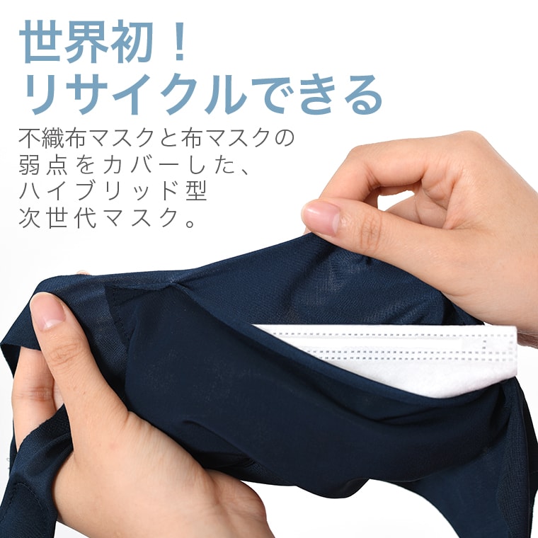 【世界初】使い捨てマスクと布マスクの弱点をカバーしたハイブリッド型次世代マスク[ウイルス 花粉 飛沫感染 吸水速乾 通気性 肌に優しい 立体 おしゃれ ガーゼ 白 黒 ネイビー 洗濯]